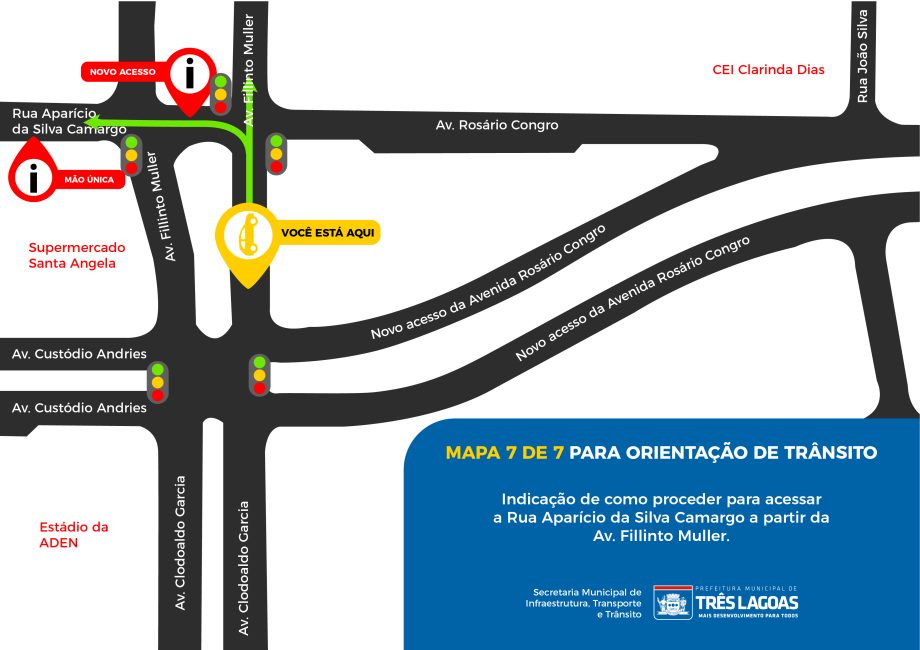 Desse modo, a Diretoria alerta que os condutores que realizam trajetos nos bairros Centro, Jardim Noroeste e Santos Dumont devem estar atentos aos novos cruzamentos e sinalizações. Além disso, reforça que o semáforo da Rua Paranaíba com a Avenida Fillinto Muller continuará funcionando normalmente.