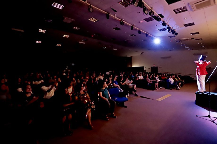 Na noite de segunda-feira (10), o Núcleo de Teatro Adulto da Diretoria de Cultura realizou a emocionante apresentação “O Melhor Espetáculo do Mundo”, no Anfiteatro da UFMS – Câmpus II. Com mais de 200 pessoas presentes, o evento foi um verdadeiro sucesso, celebrando a arte teatral em sua forma mais pura e envolvente, além de marcar o encerrando suas atividades de 2025 do Núcleo de Teatro Adulto da Diretoria de Cultura.