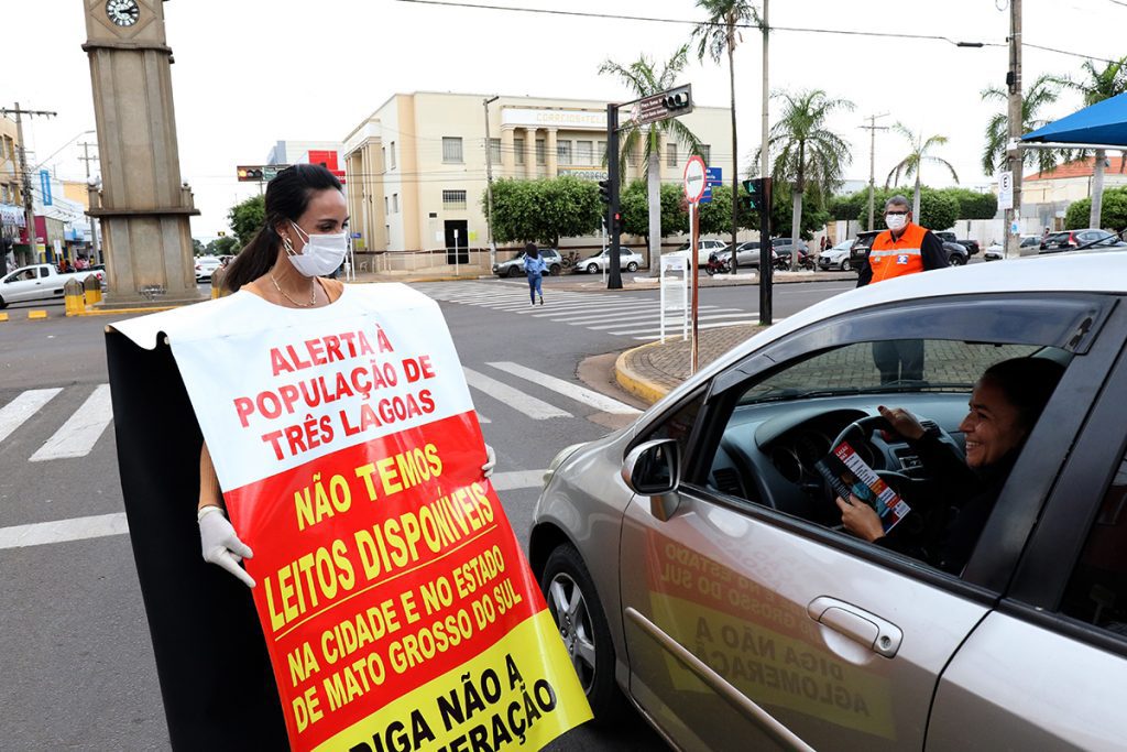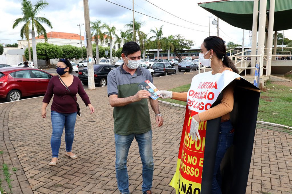 A Defesa Civil de Três Lagoas, Sindicato do Comércio Varejista (SINDIVAREJO) e servidores voluntários da Secretaria Municipal de Educação e Cultura (SEMEC) iniciaram nesta sexta-feira (11), uma panfletagem na praça Ramez Tebet, para alertar a população sobre a realidade da saúde no Município sobre a COVID-19.