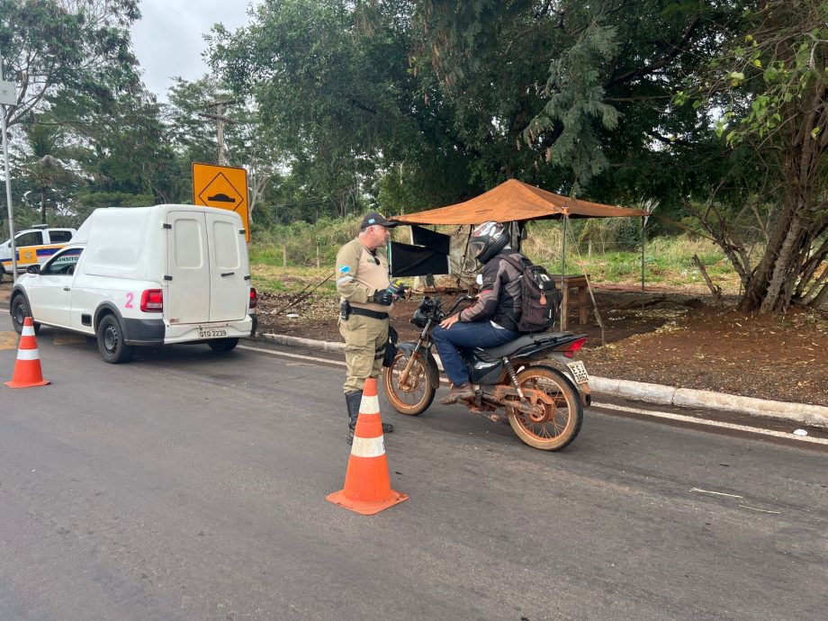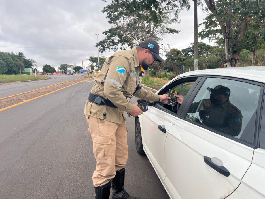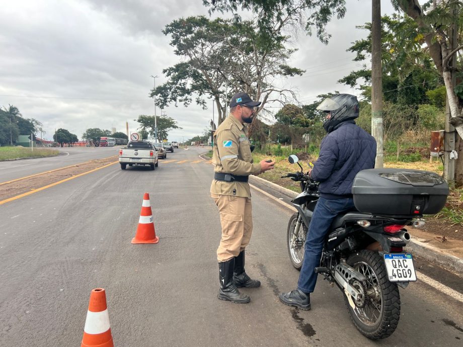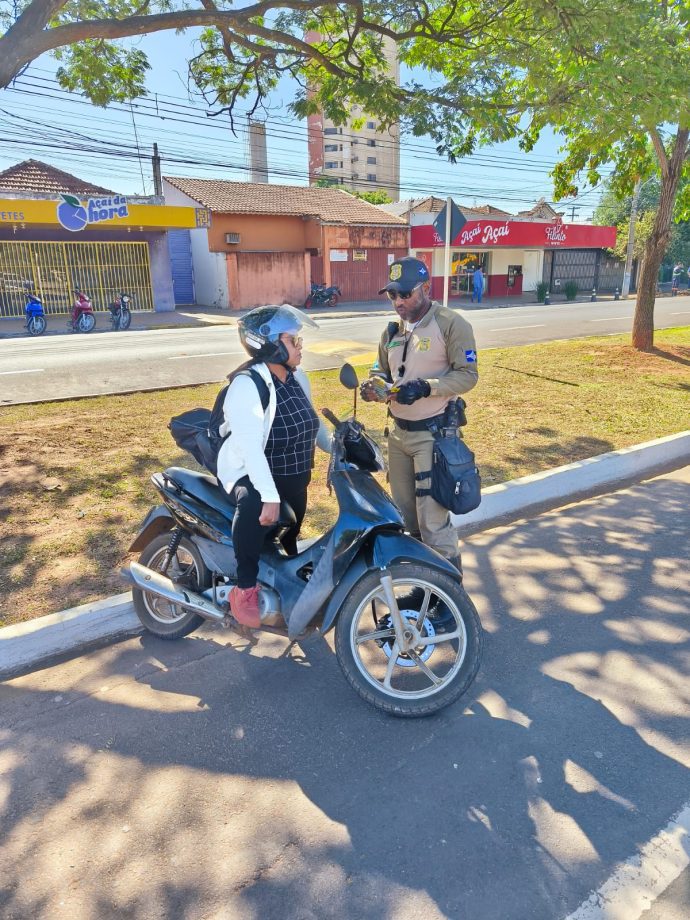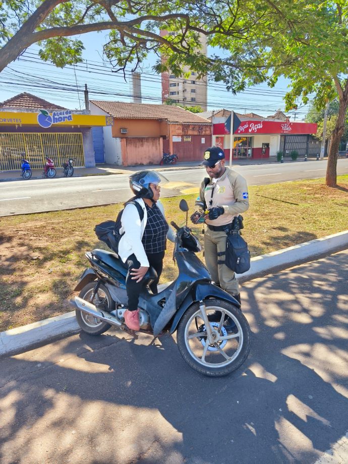 Dando sequência à programação, no dia 28 de julho, com o apoio da PRF, foram realizadas abordagens educativas nas proximidades do posto fiscal, em alusão ao Dia do Motociclista. Nessas abordagens, os motociclistas foram orientados sobre os riscos de sinistros, equipamentos obrigatórios e a idade mínima para o transporte de crianças, com a entrega de panfletos.