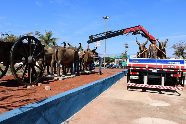 Resgaste histórico-cultural e encanto aos olhos de quem passa estão presentes nas ruas e praças de Três Lagoas. No último sábado, a Administração Municipal instalou a escultura “Junta de Bois”, na Praça do Jardim Alvorada.