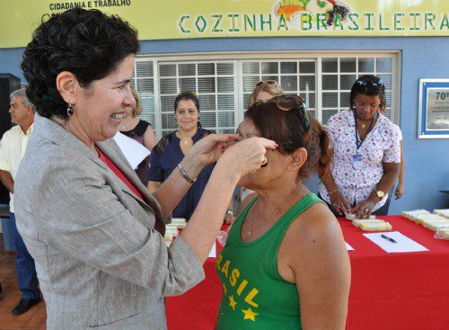 Beneficiária do CRAS Vila Piloto, Maria Aparecida de Freitas Messias, compareceu ao evento para receber os óculos de seu marido. Meu esposo passou por uma cirurgia recentemente, está de repouso, e não pode vir buscar os óculos dele. Esta é uma boa oportunidade porque nem todo mundo tem condições financeiras para mandar fazer, agradeceu Maria Aparecida.