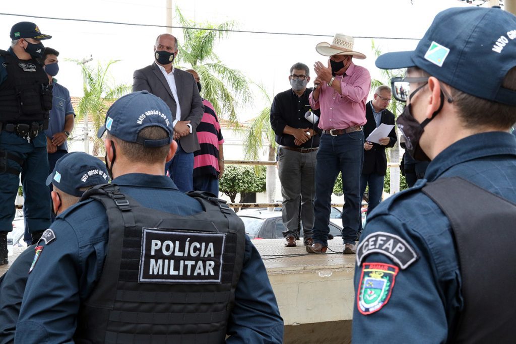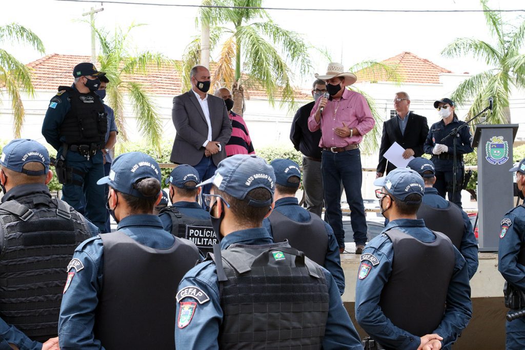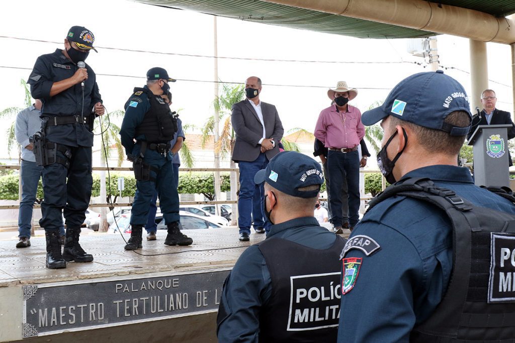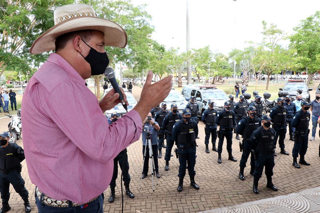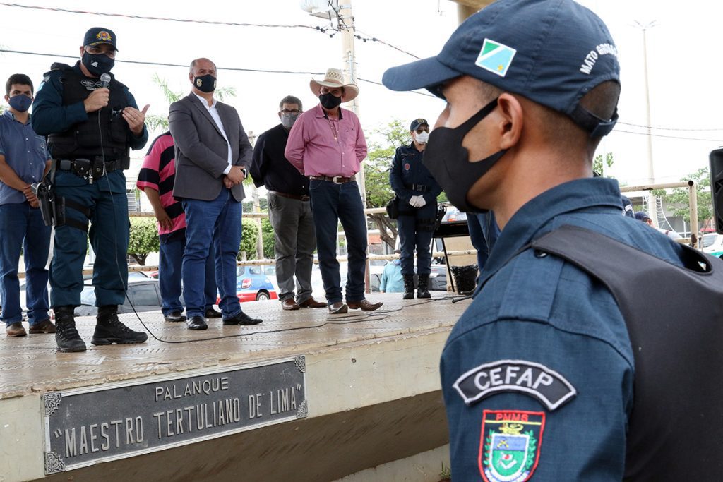 O prefeito Angelo Guerreiro esteve na manhã desta sexta-feira (04) na Praça Ramez Tebet para a solenidade de lançamento do reforço no policiamento na área comercial da Cidade denominada “Operação Boas Festas”.