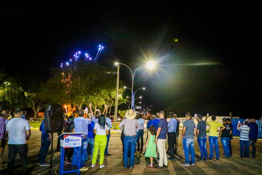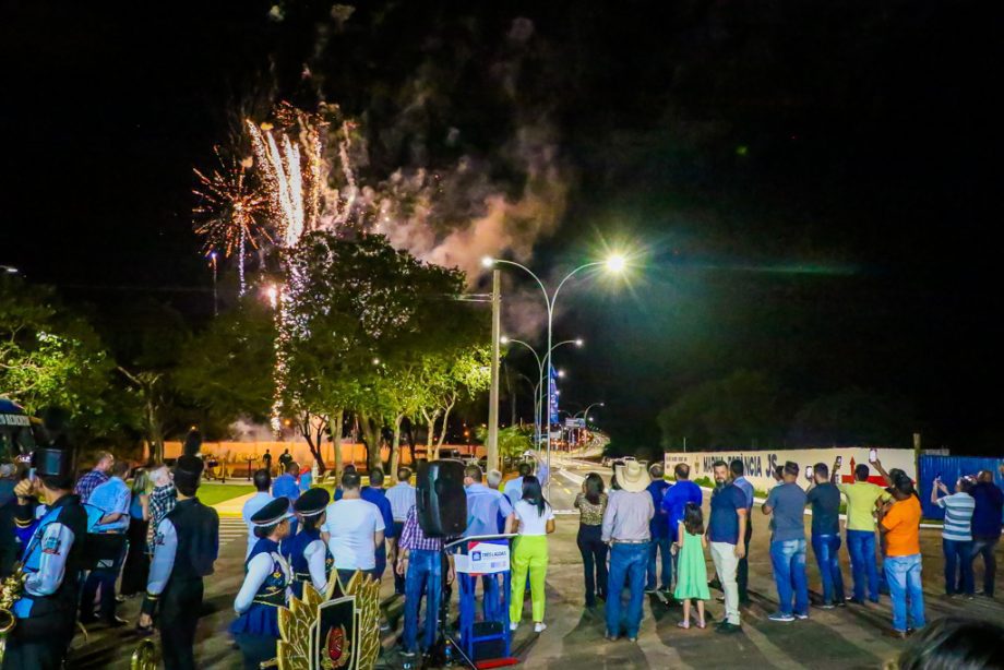 Ao fim dos discursos, anunciada com queima de fogos de artifício, o prefeito, junto de vereadores e demais autoridades presentes, inauguraram a iluminação em led e descerraram a placa que marcou a entrega da obra.