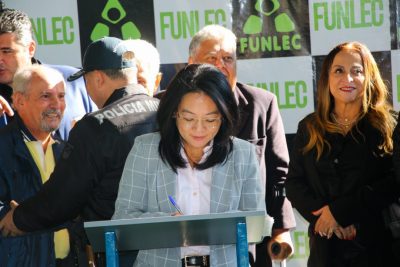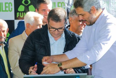 Na manhã desta sexta-feira, 4 de junho, autoridades municipais, representantes de instituições públicas e a população se reuniram na quadra do Colégio FUNLEC para a solenidade de assinatura do termo de cooperação da União, que oficializa a doação de áreas para importantes entidades de Três Lagoas.