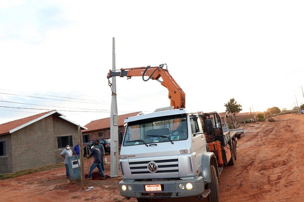 A obra foi retomada recentemente, pois a Administração Municipal não estava encontrando postes de concreto homologados para aquisição, conforme exigiu a empresa concessionária de energia.