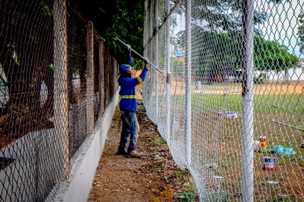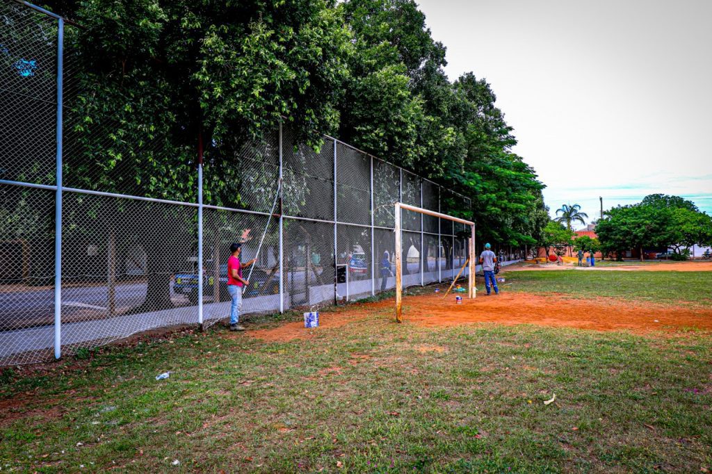 Para à revitalização estão sendo realizado os serviços de calçamento ao redor do campo, a restauração de alambrado (com substituição de mourões danificados e reparo de mureta), além da pintura.