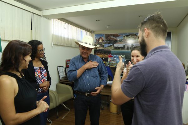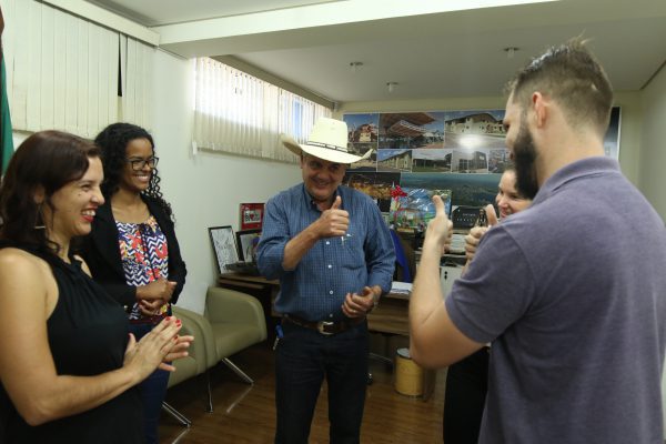 O professor do curso de Linguagem Brasileira de Sinais – LIBRAS do Campus Três Lagoas da Universidade Federal de Mato Grosso do Sul (UFMS), Adriano Oliveira Gianotto, foi recebido pelo prefeito Angelo Guerreiro em seu Gabinete, na manhã desta sexta-feira (04).