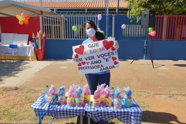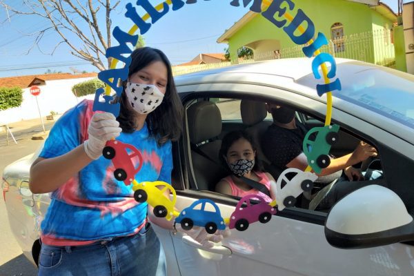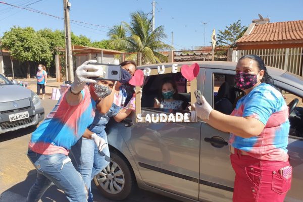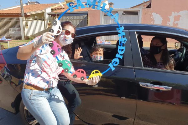 Conforme a diretora Jozicleia Porfírio, os pais foram avisados sobre o drive-thru, que é uma forma de matar a saudade daqueles que estão diariamente juntos e, atualmente, sem contato devido à pandemia. A equipe também distribuiu lembrancinhas para as crianças.