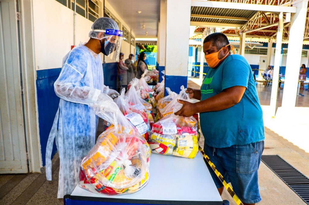 Os kits contêm arroz, feijão, sardinha, canjiquinha, macarrão, biscoito de água e sal, biscoito de maisena, leite em pó, fubá, farinha de trigo, extrato de tomate e achocolatado.