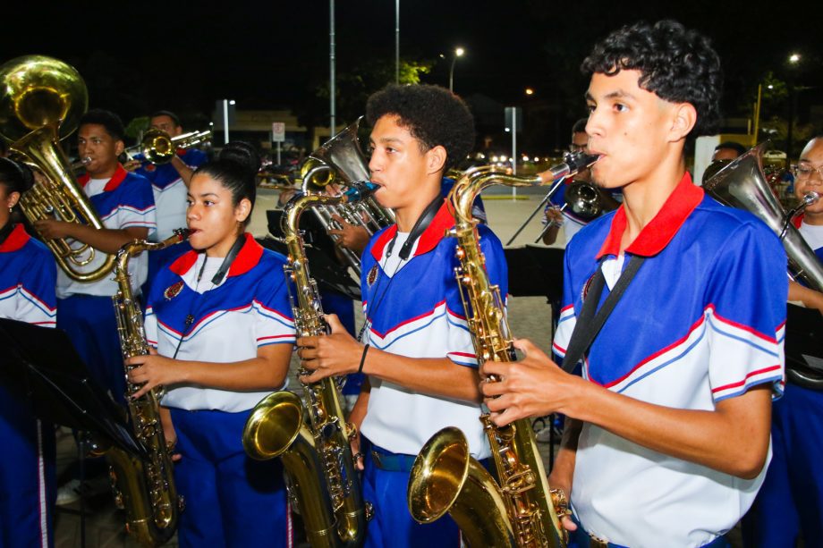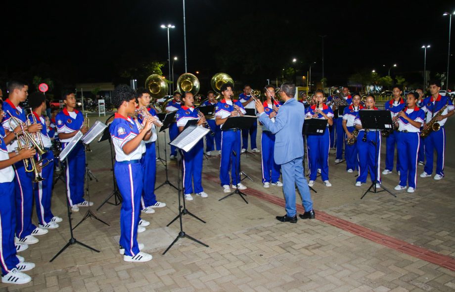 A programação seguiu com apresentações musicais: a Banda Cristo Redentor animou o público e, dentro da Feira, o cantor local Leonardo trouxe um repertório variado e muito talento para completar a noite.