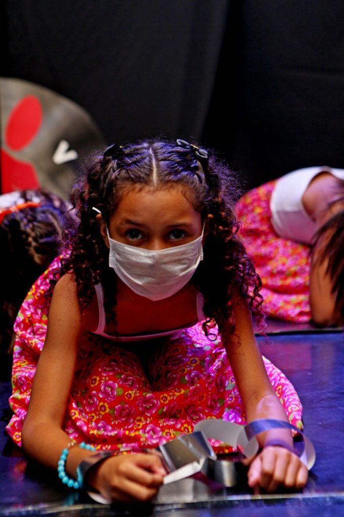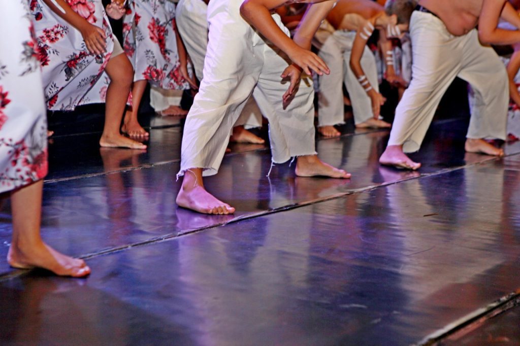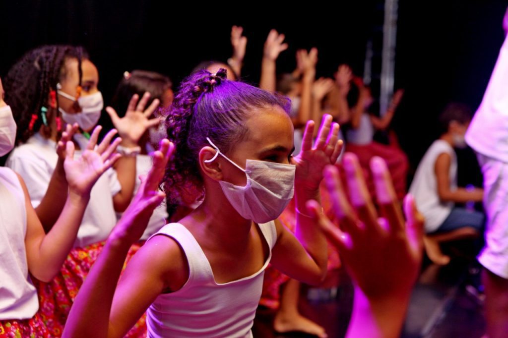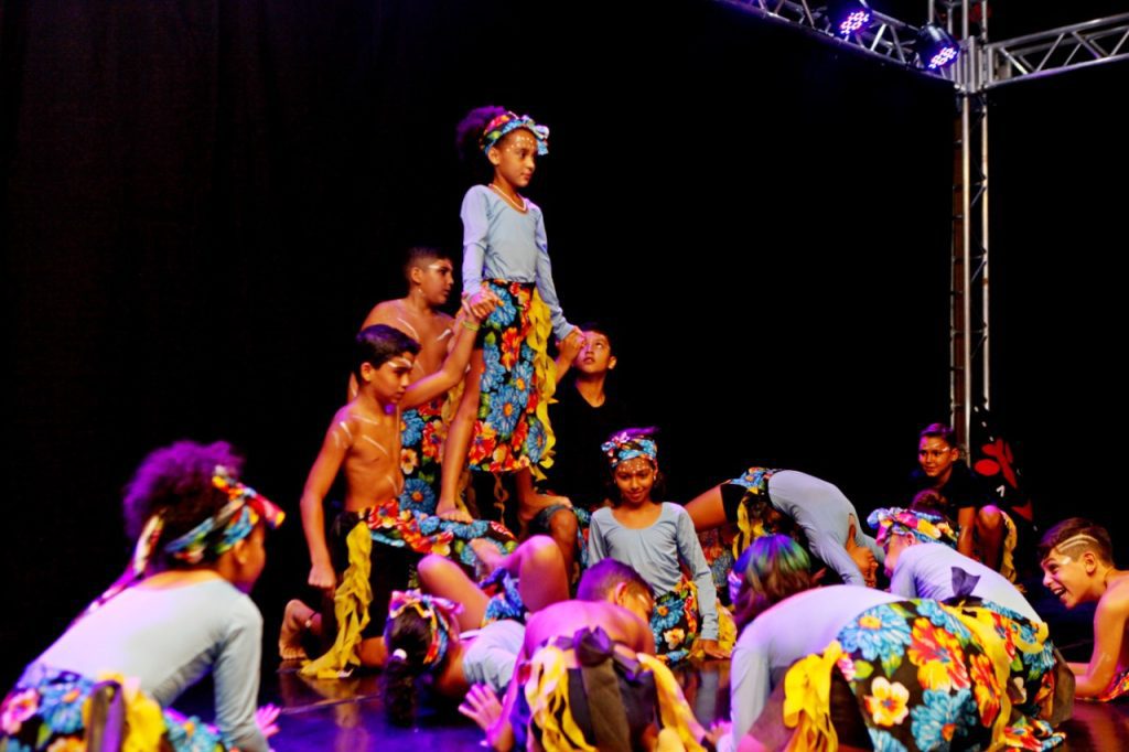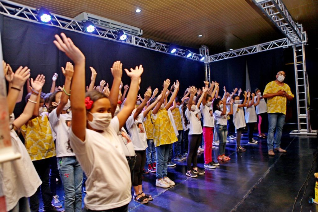 A sétima atração foi dança das crianças da Odeir Antônio da Silva ao som da música “Identidade” de Jorge Aragão. E para finalizar a noite o coral com a música “Canção da América”.