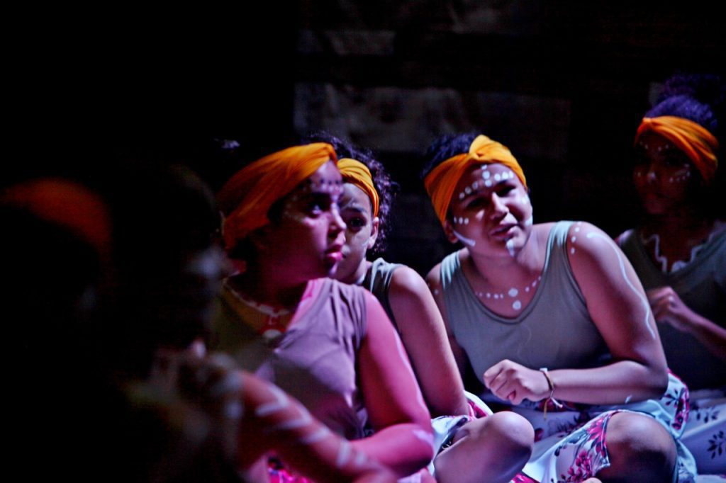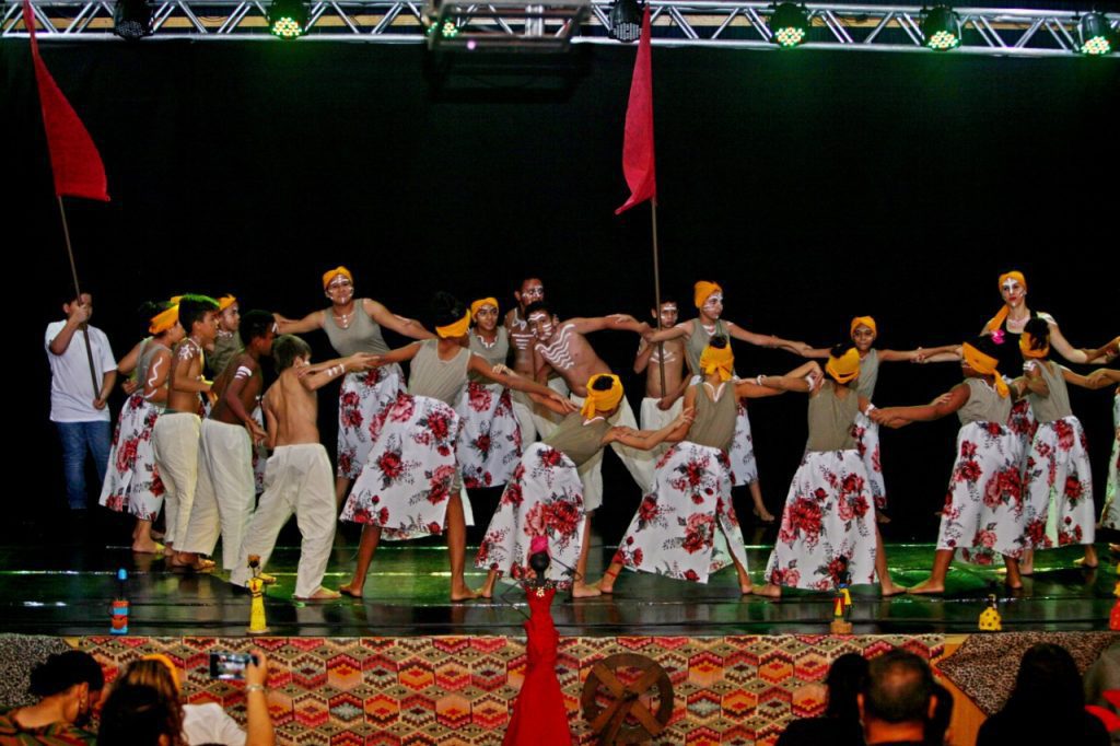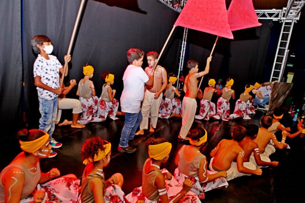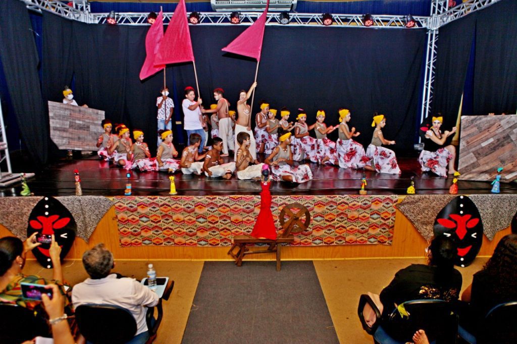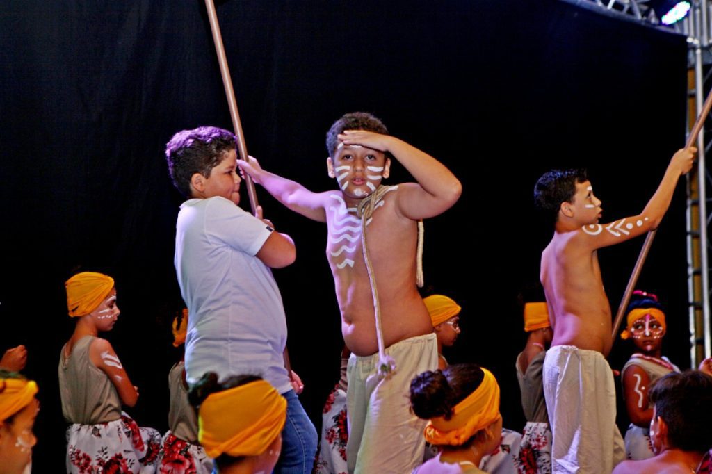 Abrindo o espetáculo da noite os primeiros que passaram pelo palco foram os estudantes da Escola Gentil Rodrigues Montalvão que retrataram o tráfico de escravos, com a encenação do poema de Castro Alves (Navio negreiro).