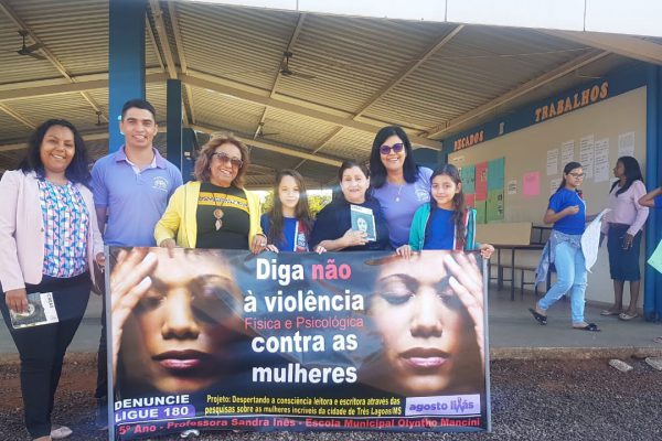 Alunos do quinto ano A da Escola Municipal “Olyntho Mancini” realizaram ao lado da professora Sandra Inês Oliveira Dias, o projeto “Desenvolvendo a consciência leitora e escritora através das pesquisas sobre as mulheres incríveis de Três Lagoas – MS”. Uma passeata simbólica em torno da escola com todos os alunos da escola foi realizada esta semana para abordar a violência e feminicídio contra a mulher.