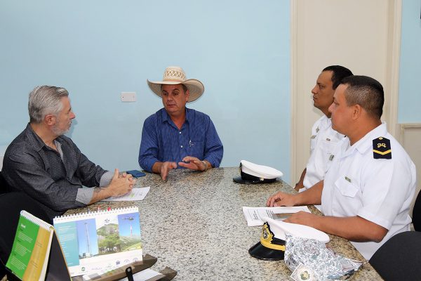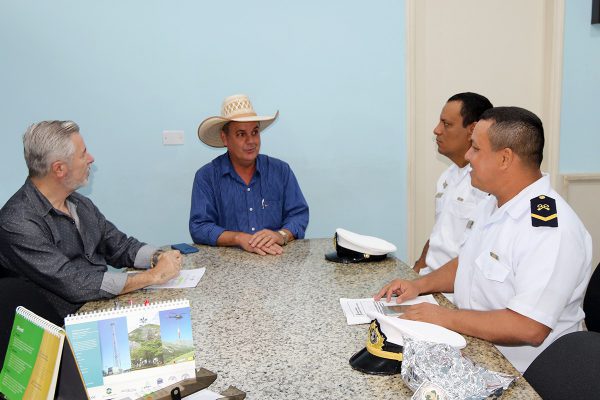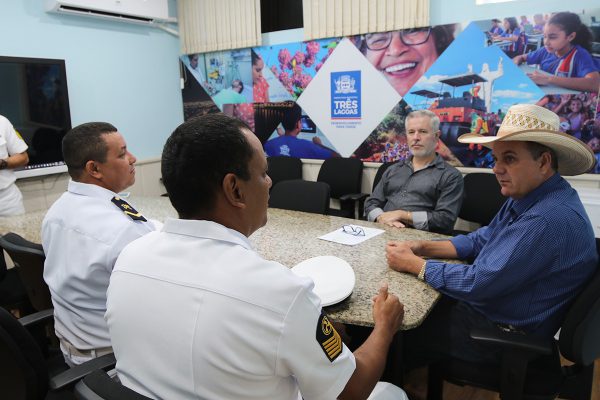 O prefeito de Três Lagoas, Angelo Guerreiro, recebeu em seu gabinete na manhã desta quinta-feira (13), o Sub Oficial, Martinelo; o 1º Sargento Welligton e o 2º Sargento Fernando, da Capitania Fluvial do Pantanal (CFPN).
