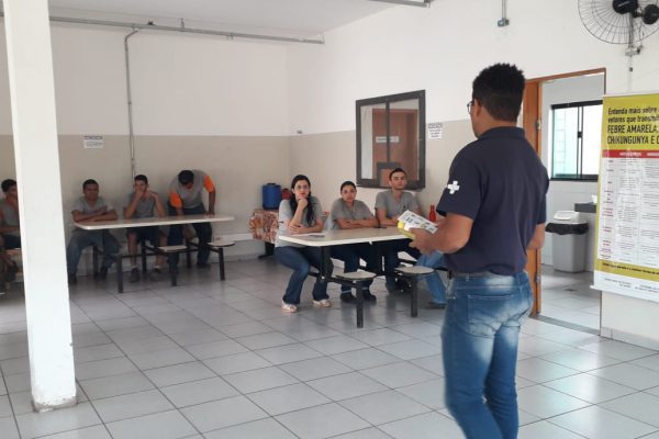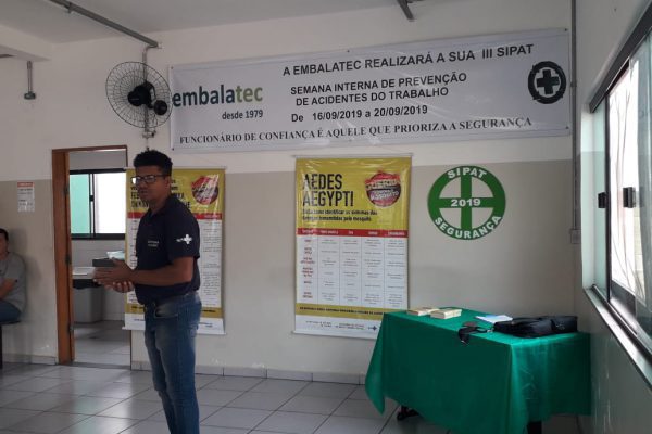 Atendendo à pedidos e seguindo a programação dessas ações de educação e prevenção, a equipe do setor de Promoção da Saúde, com o apoio e também participação dos demais setores da Diretoria de Vigilância em Saúde e Saneamento, esteve também na Empresa Embalatec, no Distrito Industrial, nesta semana.