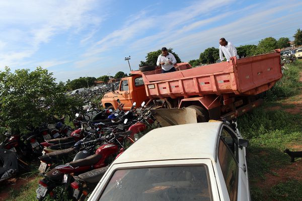 “Logo de cara, localizamos quatro focos criadouros com larvas do Aedes aegypti. Um deles foi encontrado em uma das inúmeras motocicletas que aqui estão depositadas”, mostrou Alcides.