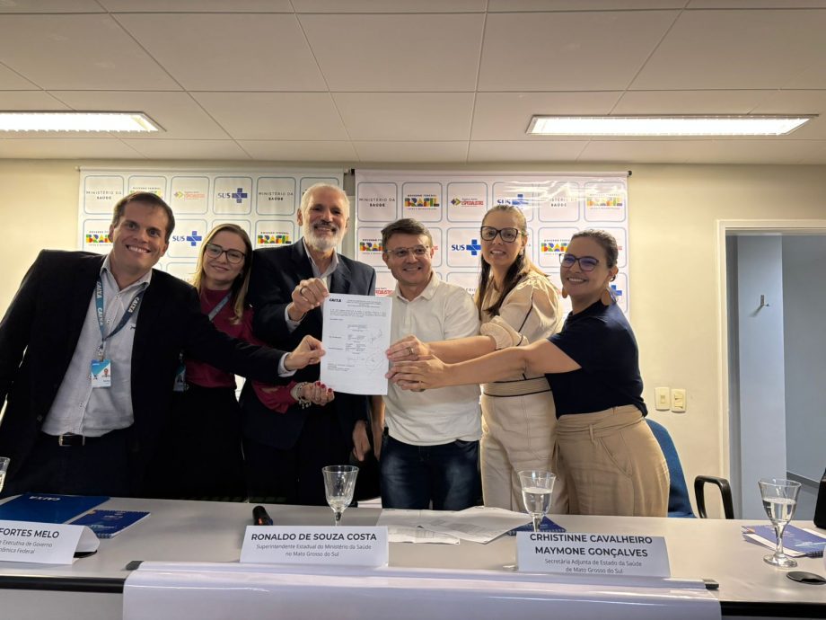 Também assinaram o termo Ronaldo de Souza Costa, superintendente estadual do Ministério da Saúde no Mato Grosso do Sul (SEMS/MS); Carlos Fábio, superintendente executivo de Governo da Caixa e Edson da Mata, superintendente de Governança Hospitalar da Secretaria de Estado de Saúde (SES/MS).