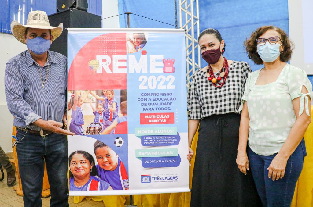 A secretária de Educação e Cultura, Angela Brito, ao lado do prefeito Angelo Guerreiro, reuniu na manhã de quarta-feira (17) no CRASE “Coração de Mãe”, os gestores da Rede Municipal de Ensino (REME) de Três Lagoas para o lançamento das Rematrículas Ano 2022.