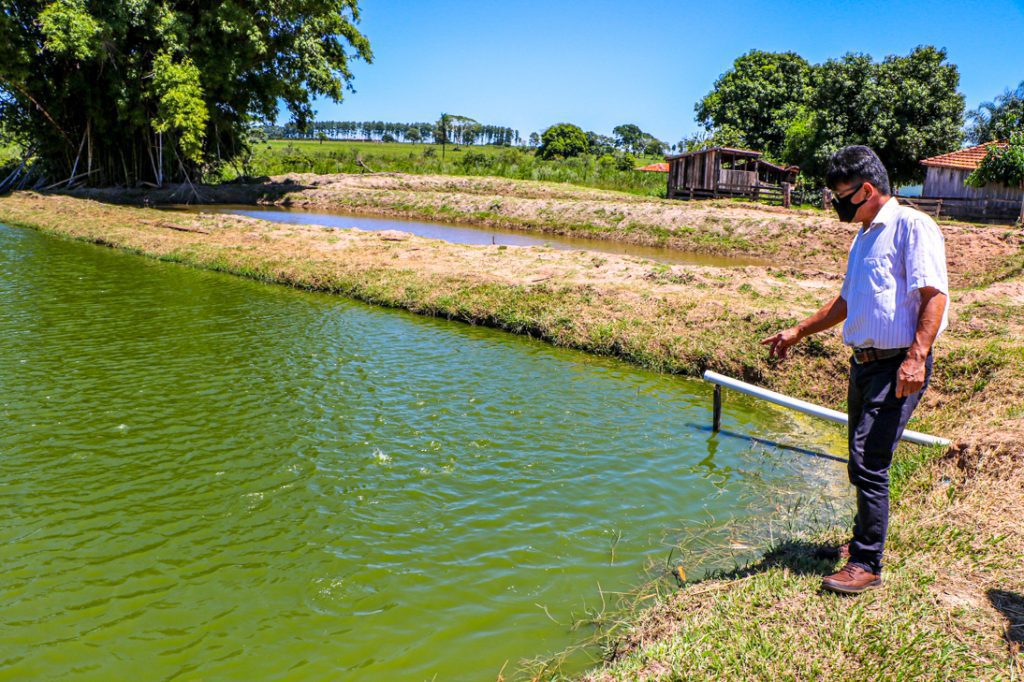 Ainda acompanhado do secretário local, Celso também visitou a propriedade do senhor Alan Lima Pereira, na Estância São Sebastião. Com foco na produção de leite, o produtor decidiu diversificar e hoje tem seis tanques de 10×40 metros de extensão que comporta o desenvolvimento de 1.500 tilápias cada.