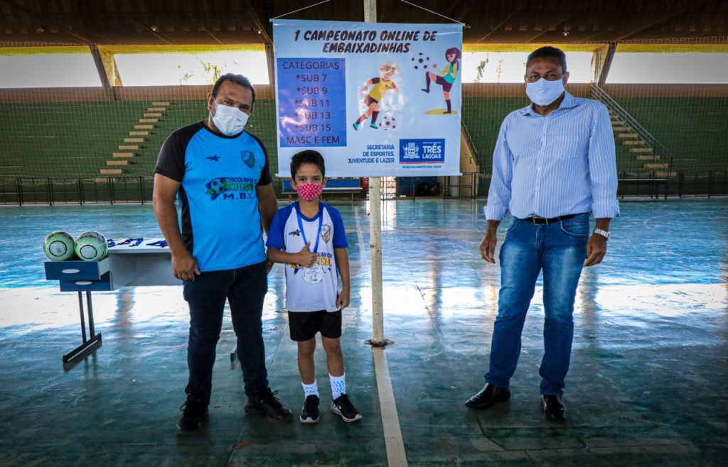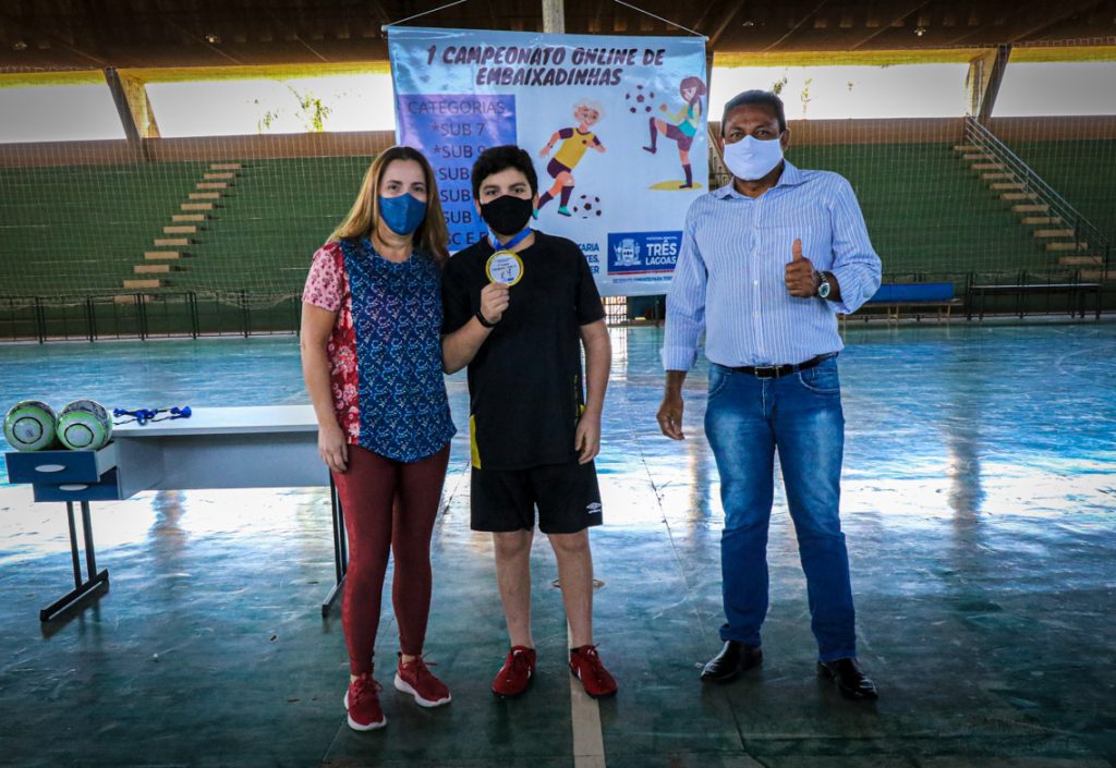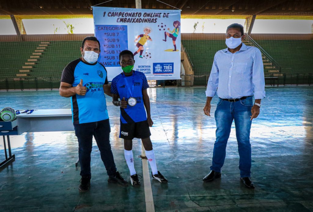 Na manhã desta terça-feira (03), o secretário de Esporte, Juventude e Lazer, Rialino Medeiros, juntamente com a comissão organizadora, realizou a entrega da premiação aos vencedores do 1º Campeonato Online de Embaixadinhas de Três Lagoas.