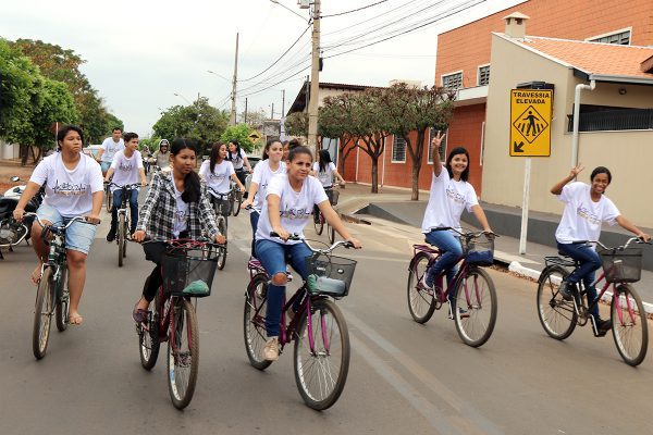 Cerca de 80 alunos do Ensino Médio aderiram ao passeio que aconteceu pela manhã e foi acompanhado dos agentes de trânsito. Os alunos receberam camisetas e kits de sinalização para as bicicletas.