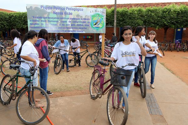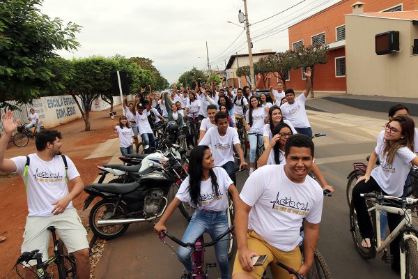 Hoje (25), dia D da campanha, aconteceu um passeio ciclístico com alunos da Escola Estadual Bom Jesus, em parceria com empresa Graneleiro. A escola foi escolhida porque já existe a iniciativa do incentivo do uso de bicicletas, a partir de um professor que tem o hábito de trabalhar apenas com esse meio de transporte.