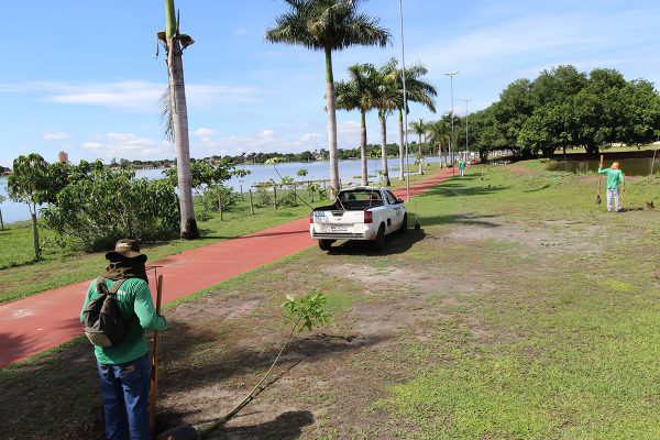 A Lagoa Maior está ficando cada vez mais arborizada e sombrosa. A equipe da Secretaria Municipal de Meio Ambiente e Agronegócio (SEMEA) realizou o plantio de 20 mudas de árvores no entorno da pista de caminhada, na manhã de quarta-feira (20), aproveitando o clima favorável do mês de março.