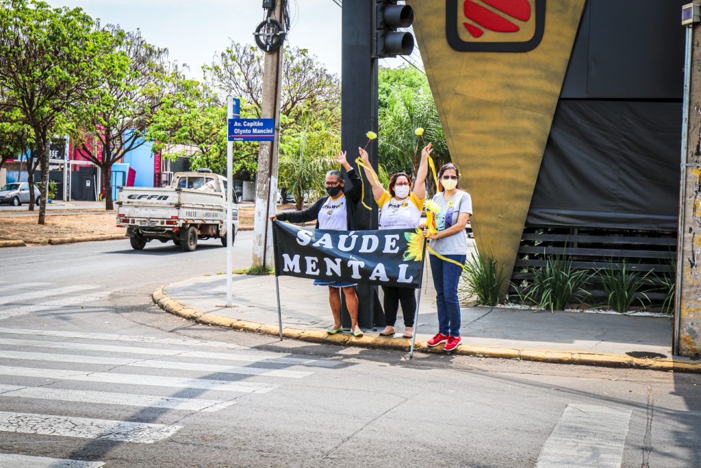 Na manhã desta sexta-feira (10), as equipes da Rede de Atenção Psicossocial (RAPS) se concentraram no semáforo do cruzamento das avenidas Filinto Muller e Olinto Mancini para realizar a ação de conscientização em alusão ao Dia Mundial de Prevenção ao Suicídio, comemorado hoje.