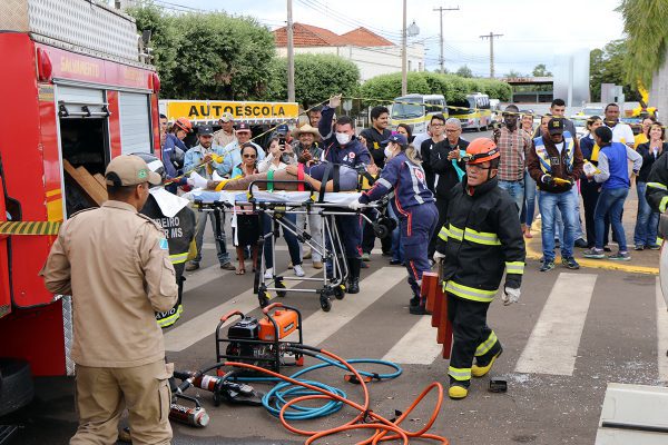 Ao final da carreata a população pode ver uma simulação de resgate após um capotamento de veículo. Um voluntário recebeu maquiagem de ferimentos e ficou posicionado dentro de um veículo enquanto equipes do SAMU e do Corpo de Bombeiros o socorreram.