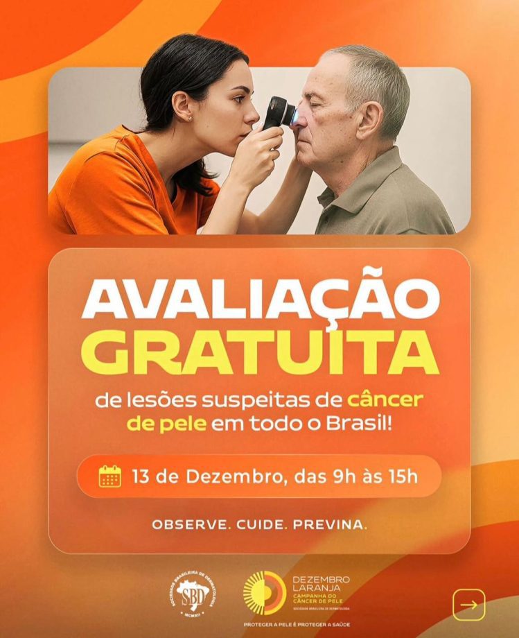 A Prefeitura de Três Lagoas, por meio da Secretaria Municipal de Saúde (SMS), em apoio à Sociedade Brasileira de Dermatologia – Regional Mato Grosso do Sul (SBD-MS), participará da ação de avaliação de manchas de pele em alusão à campanha nacional “Dezembro Laranja”.