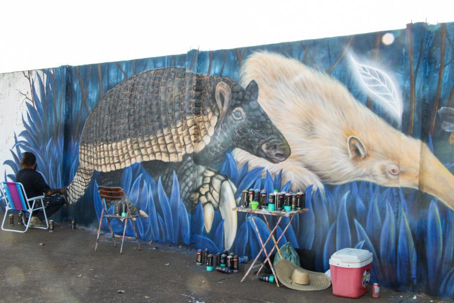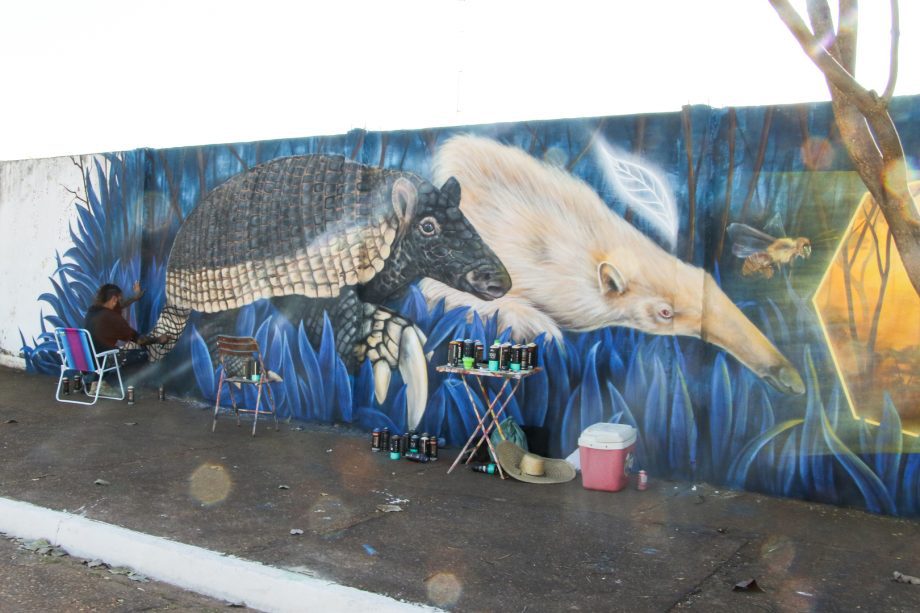 Tatu-canastra, símbolo do Parque do Pombo, vira arte mural em ação promovida pelo ICAS e Prefeitura de Três Lagoas