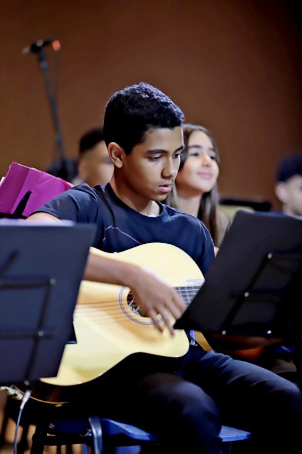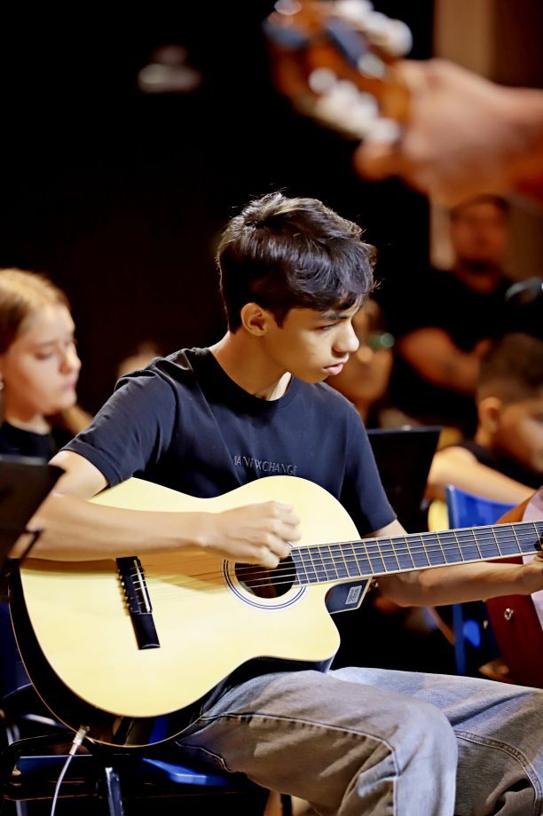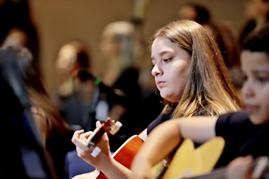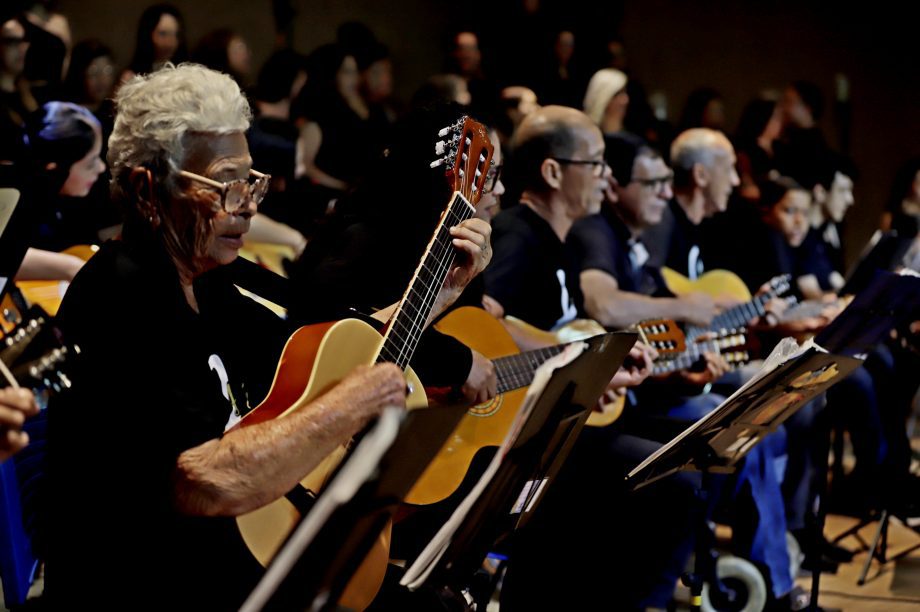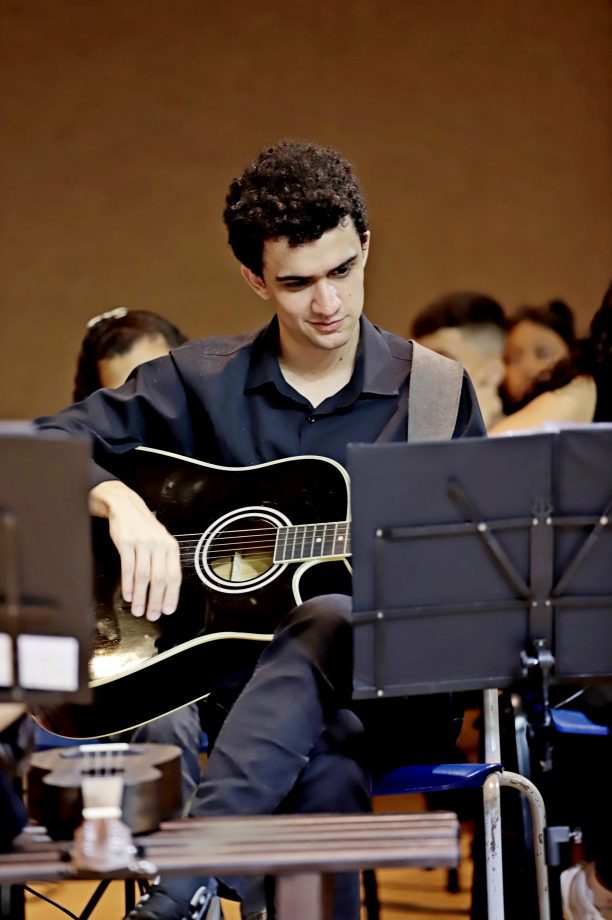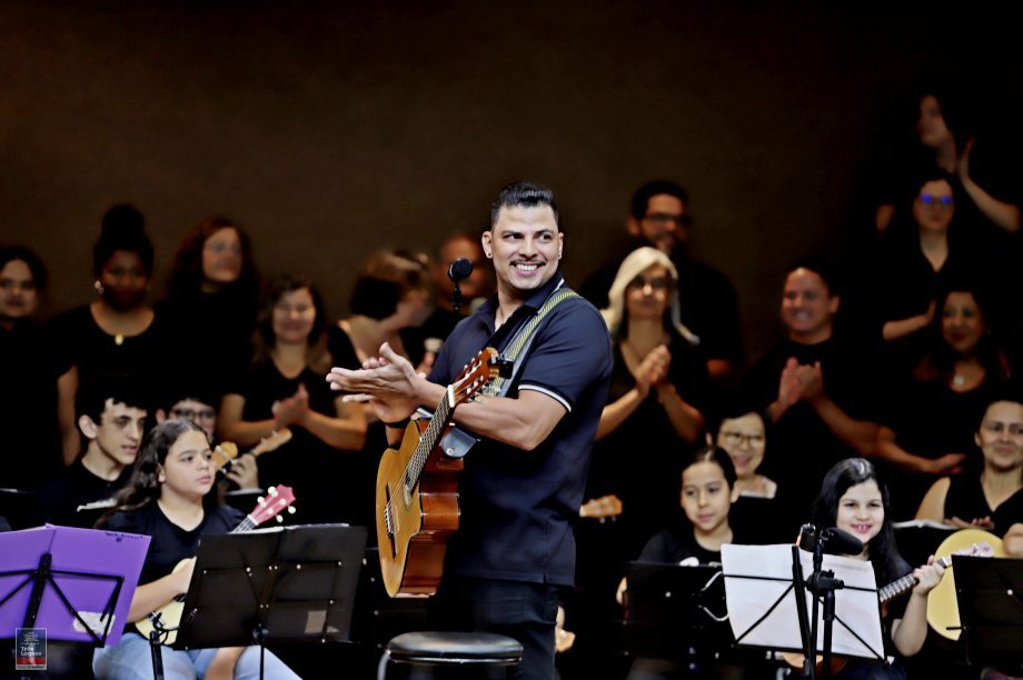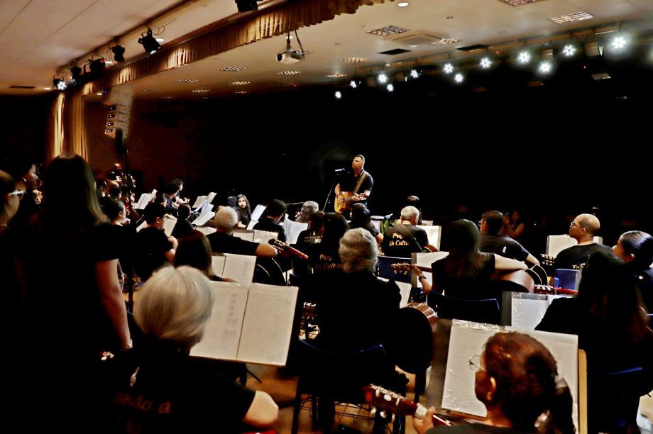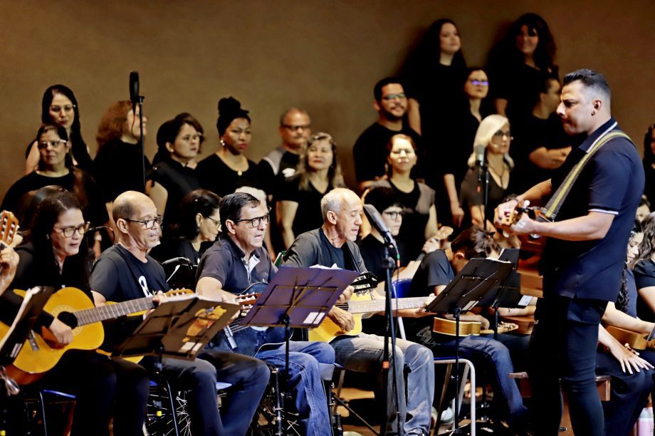 Cerca de 100 alunos do curso de violão e ukulele e o Coral Renascer, deram vida a uma apresentação memorável. O repertório foi uma verdadeira viagem sonora, abrangendo desde o forró nordestino até clássicos da música popular brasileira e internacional. “Cada canção é um convite à reflexão, à alegria e à gratidão”, comentou o professor Cristian, destacando a riqueza cultural que permeou a noite.