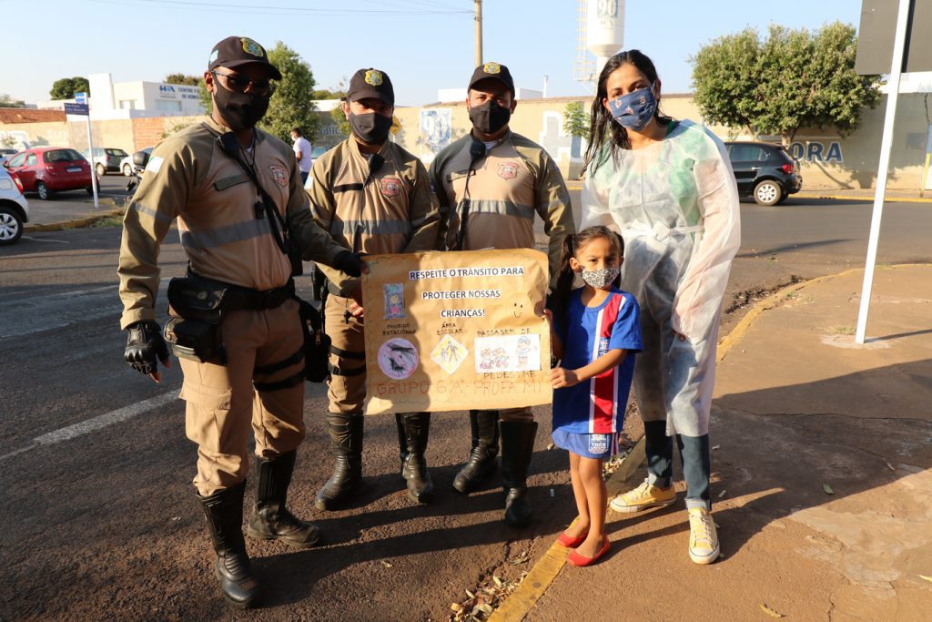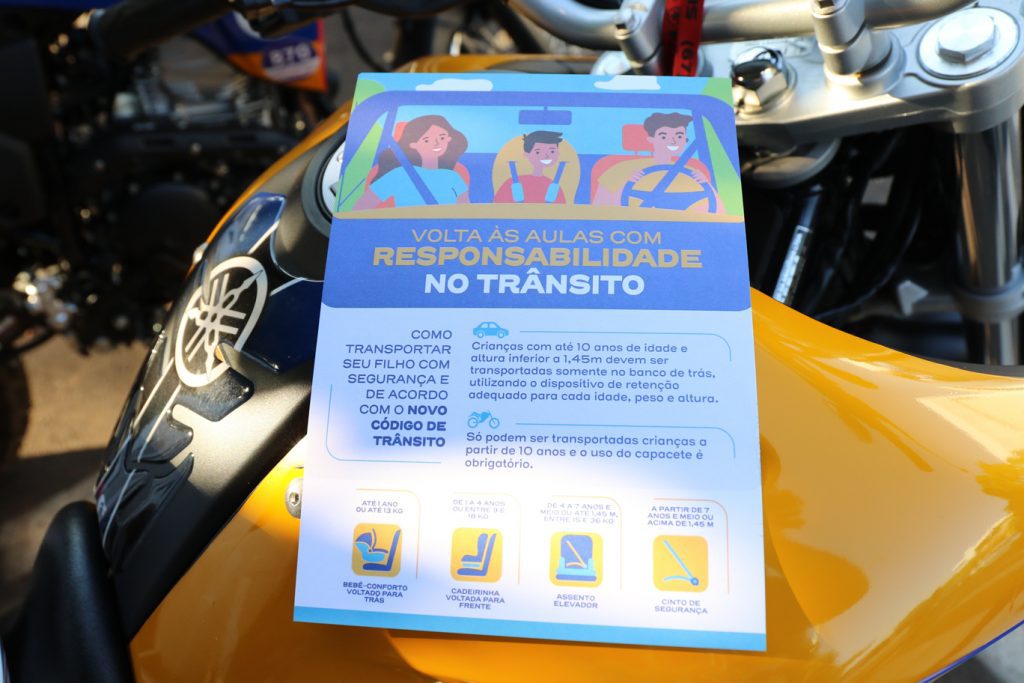 A ação realizada nesta sexta-feira faz parte da Campanha de Volta às Aulas promovida pela Diretoria de Trânsito.