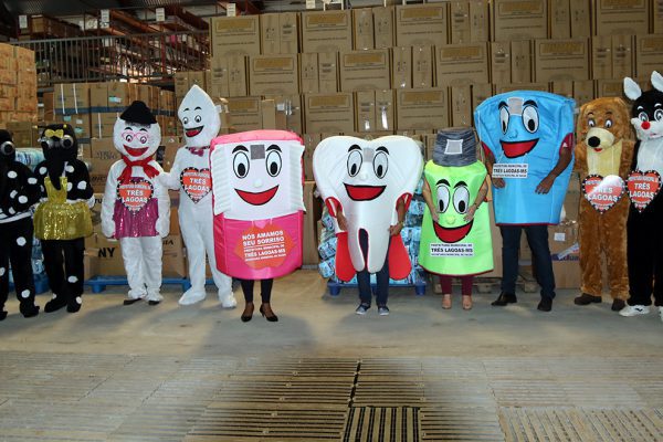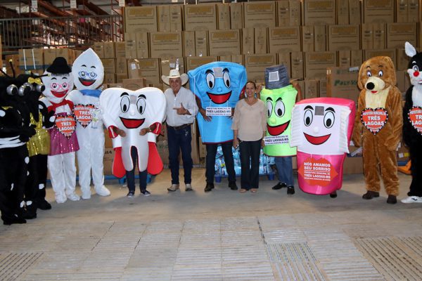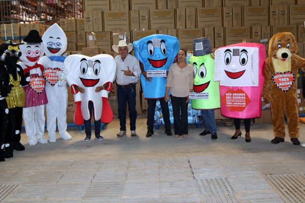 O prefeito de Três Lagoas, Angelo Guerreiro e a secretária de Saúde, estiveram no Almoxarifado, na manhã desta segunda-feira (1º), para conhecer os novos mascotes, que deverão ser usados nas múltiplas ações da Saúde.