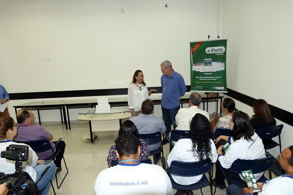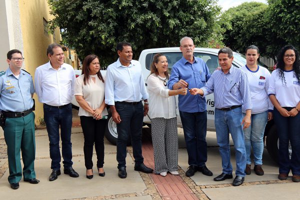 No auditório do Sebrae, Geraldo Resende também participou da formalidade de entrega de smartphones para uso dos Agentes de Endemias pelo aplicativo “E-Visita”, que controla e monitora as visitas domiciliares nas ações de enfrentamento ao Aedes aegypti e de uma camionete Mitsubishi, cabine dupla/2019, já em uso no Setor de Endemias e Controle de Vetores da SMS.