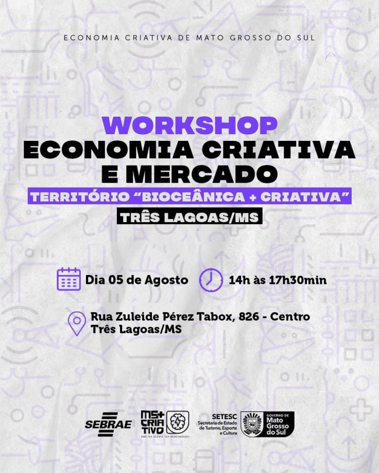 Três Lagoas se destaca como o primeiro município a receber o ” Workshop de Economia Criativa e Mercado – Território Bioceânico + Criativo”. O evento ocorreu nesta terça-feira, 05 de julho, no Serviço Brasileiro de Apoio às Micro e Pequenas Empresas (SEBRAE).