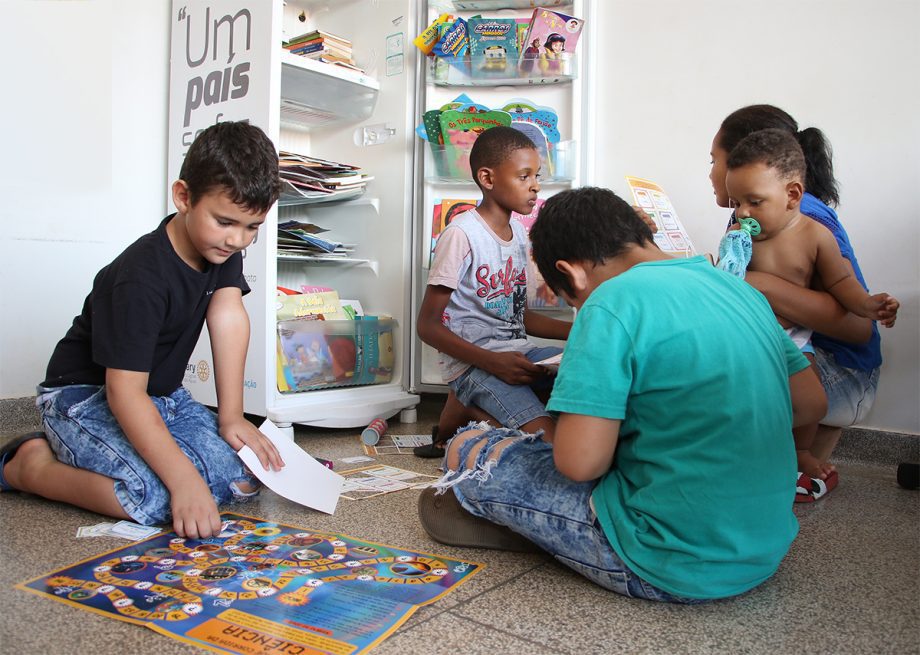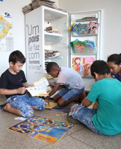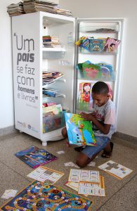 É um incentivo à leitura, especialmente para crianças, com livros e revistas colocados dentro de uma geladeira em desuso e estilizada