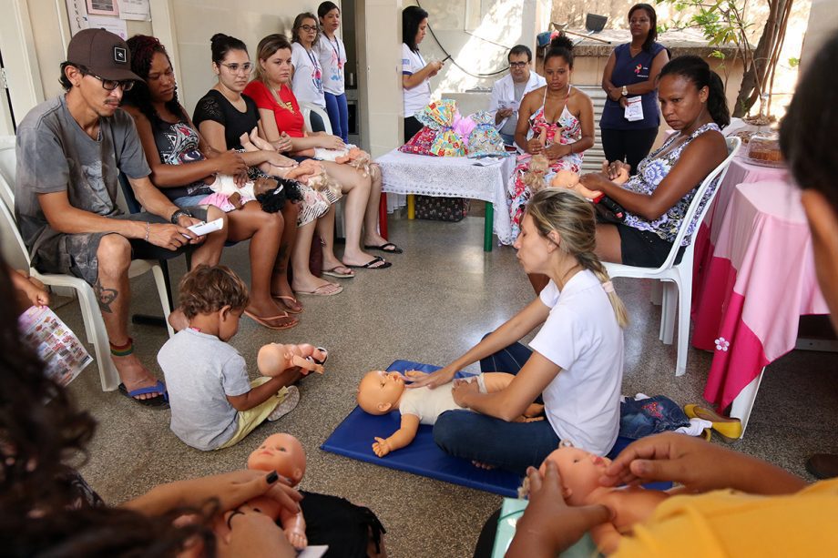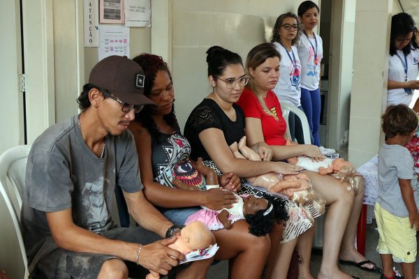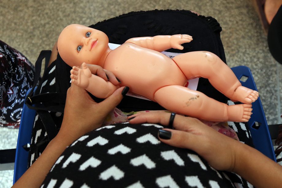 Futuras mães aprenderam a massagear os nenês, usando bonecas