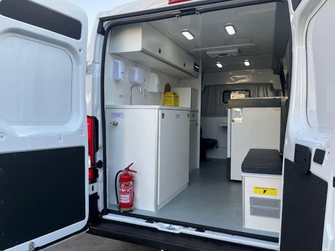 O Vacimóvel é equipado com estrutura adequada para atendimento seguro, incluindo câmara de conservação de vacinas com temperatura controlada entre 2°C e 8°C, garantindo a qualidade e eficácia dos imunizantes, além de itens como pia, dispensers de higiene, bancada de atendimento e climatização.