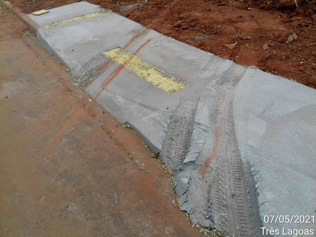 Algumas calçadas que foram feitas nesta semana, nas ruas recém-pavimentadas do Jardim Carandá, foram encontradas danificadas pelos funcionários da empresa responsável pelo serviço.